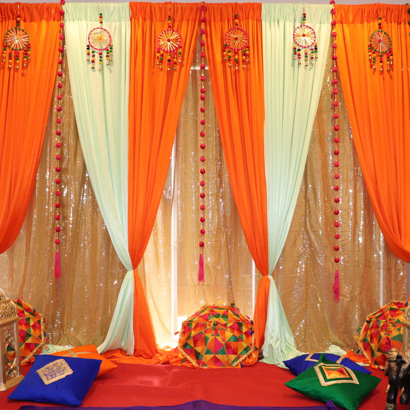 At shrathi Events - We do have required props and accessories for hire, not limited to, bridal Sofa, chairs, Haldi backdrop, Haldi tub, floor decorations and backdrops etc.